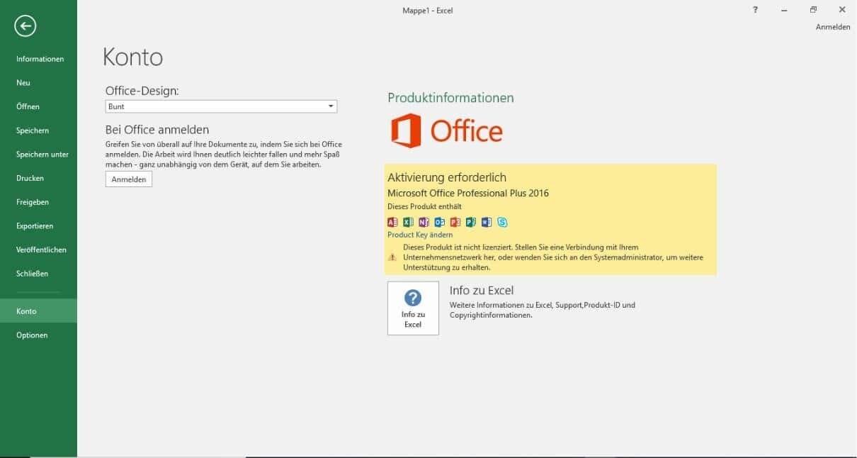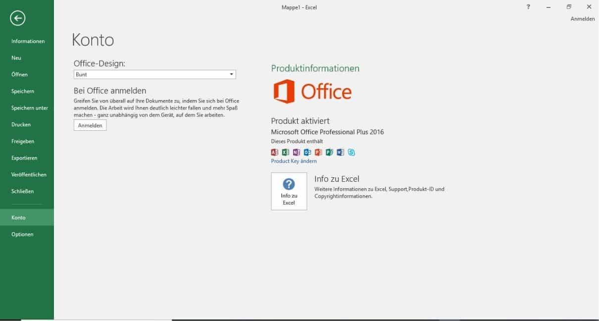Menüpunkt -> Datei Konto folgende Ansicht erhalten: