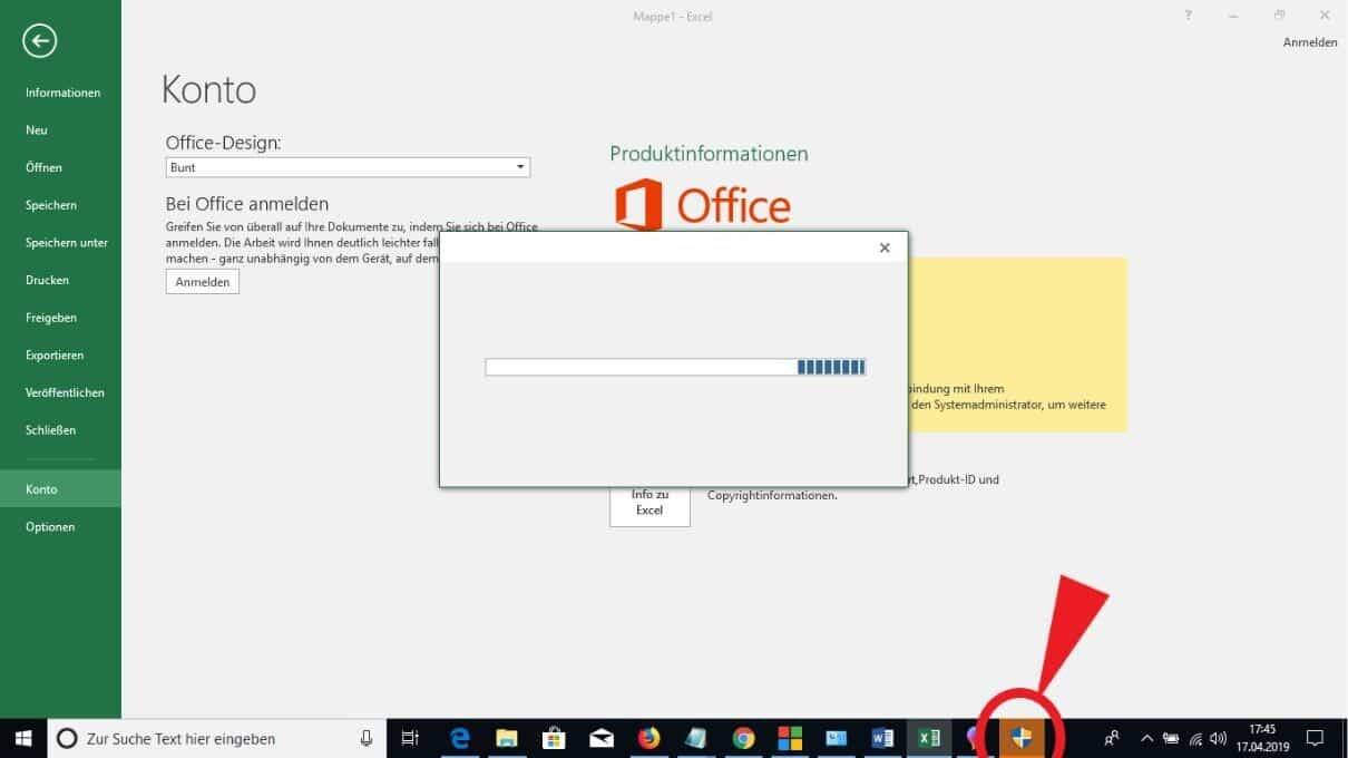 • Wenn Sie nun auf „Jetzt installieren klicken, wird die Software vollautomatisch versuchen sich bei Microsoft zu aktivieren. Dies wird jedoch durch ein Windows Sicherheitstool zunächst unterbunden, wie im folgenden Bild zu sehen ist. Öffnen Sie auf Ihrem Desktop das auf dem Bild markierte Symbol auf der Taskleiste und klicken Sie dann auf dem folgend angezeigtem Fenster auf „Ja“. Bitte sorgen Sie zudem für eine bestehende Internetverbindung, da die Software online aktiviert wird.