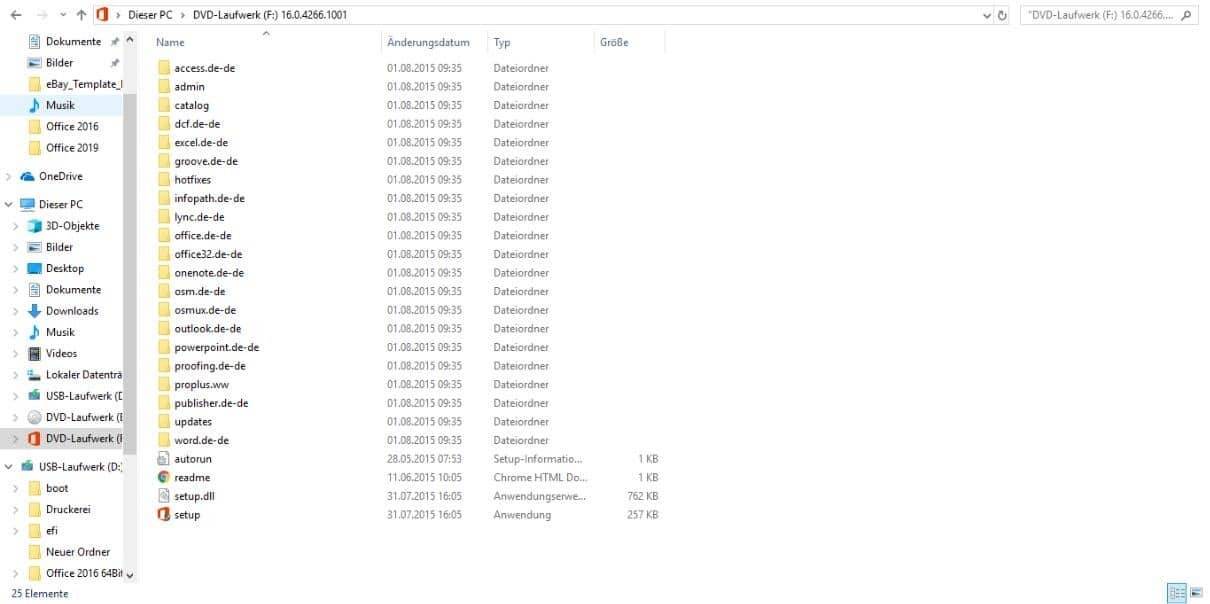 • Die linke Datei ist die 64-Bit Version von Microsoft Office 2016 Professional Plus.