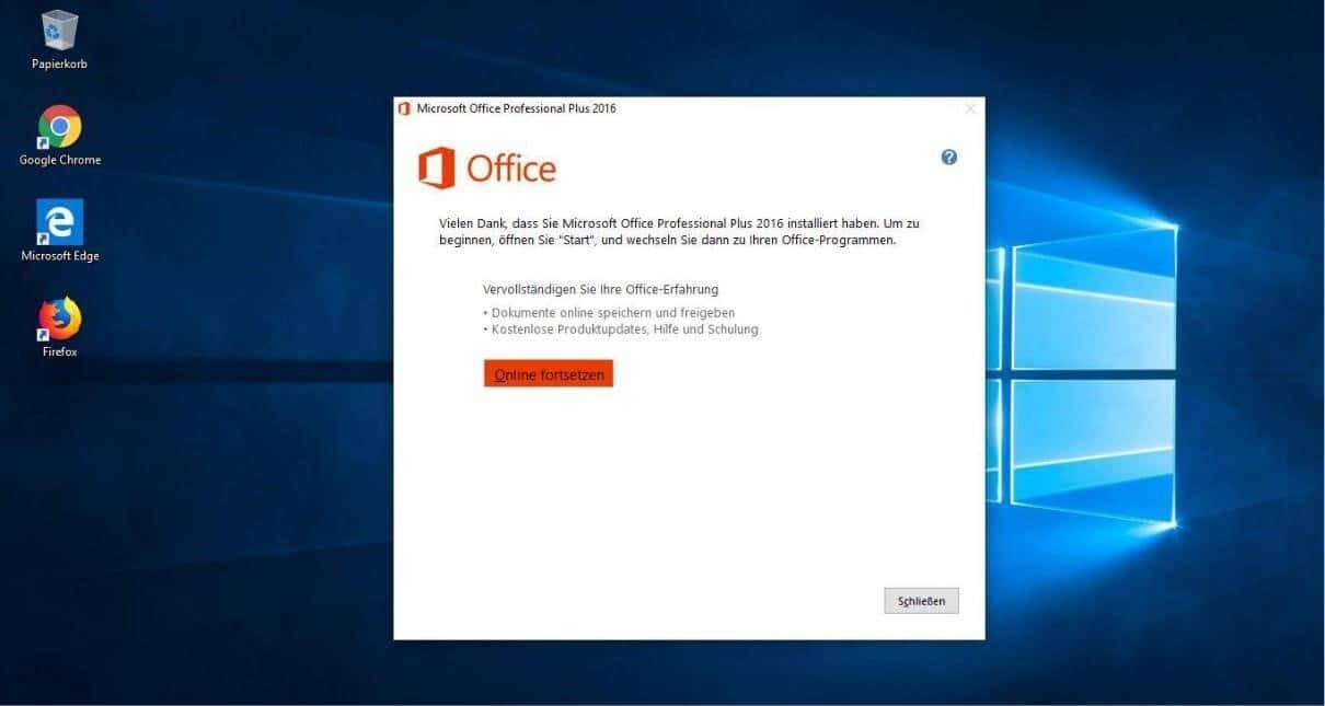 Die rechte somit die 32-Bit Version. Bitte klicken Sie auf die für Sie in Frage kommende Version von Microsoft Office 2016 Professional Plus. Wir haben uns in unserem Beispiel für die 64-Bit Version entschieden. Nach einem Klick auf das linke Symbol wird sich folgender Bildschirm öffnen: